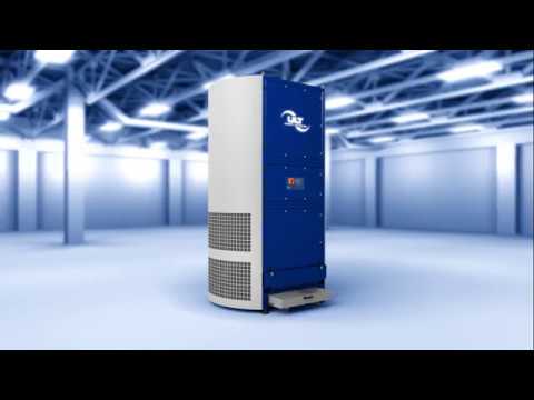 The unit draws in contaminated air from the top, passes it through filtration stages, and releases clean air back into the work area. By releasing purified air at ground level, it helps direct the thermal upstream of welding fumes towards the upper intake of the unit.
