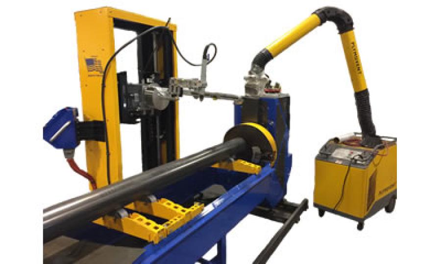 - Tracking torch head includes vertical and horizontal tracking mechanism to maintain torch height and pipe centerline to automatically compensation for bent or out-of-round pipe.