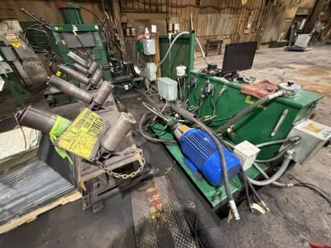 Model ABL-100, 115 Ton Punch Units on each of the two legs. 3) Sectioned Powered In-Feed Conveyors. Off-site (F.O.B. Arkansas).