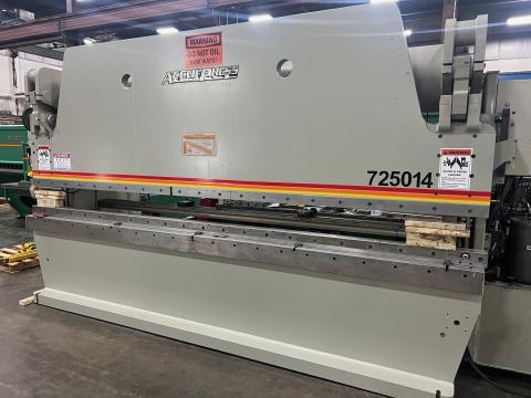 Includes ETS200 Pedestal Control. - Premium 24" Backgauge. - Advantage Package offering +/- 0.0004 repeat accuracy, dual ram encoder feedback, front covers with dial Indicator measuring ram tilt. - 12' Wila E3 Manual Crowning Die Rail. - (2) Manual X-Prime Finger Assemblies. - Additional foot pedestal. - Machine groove in bed.